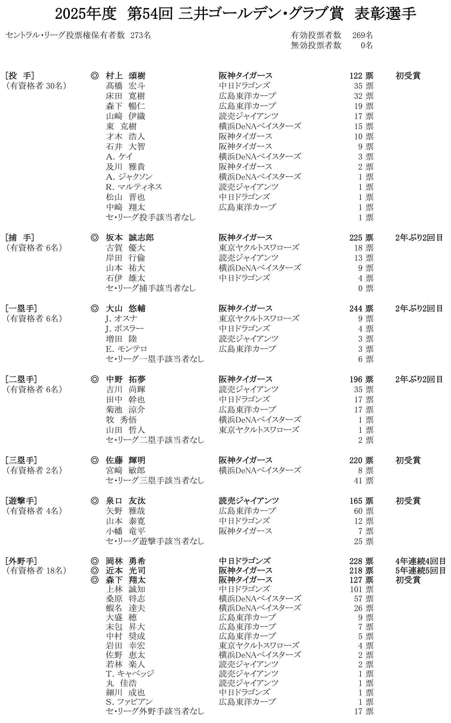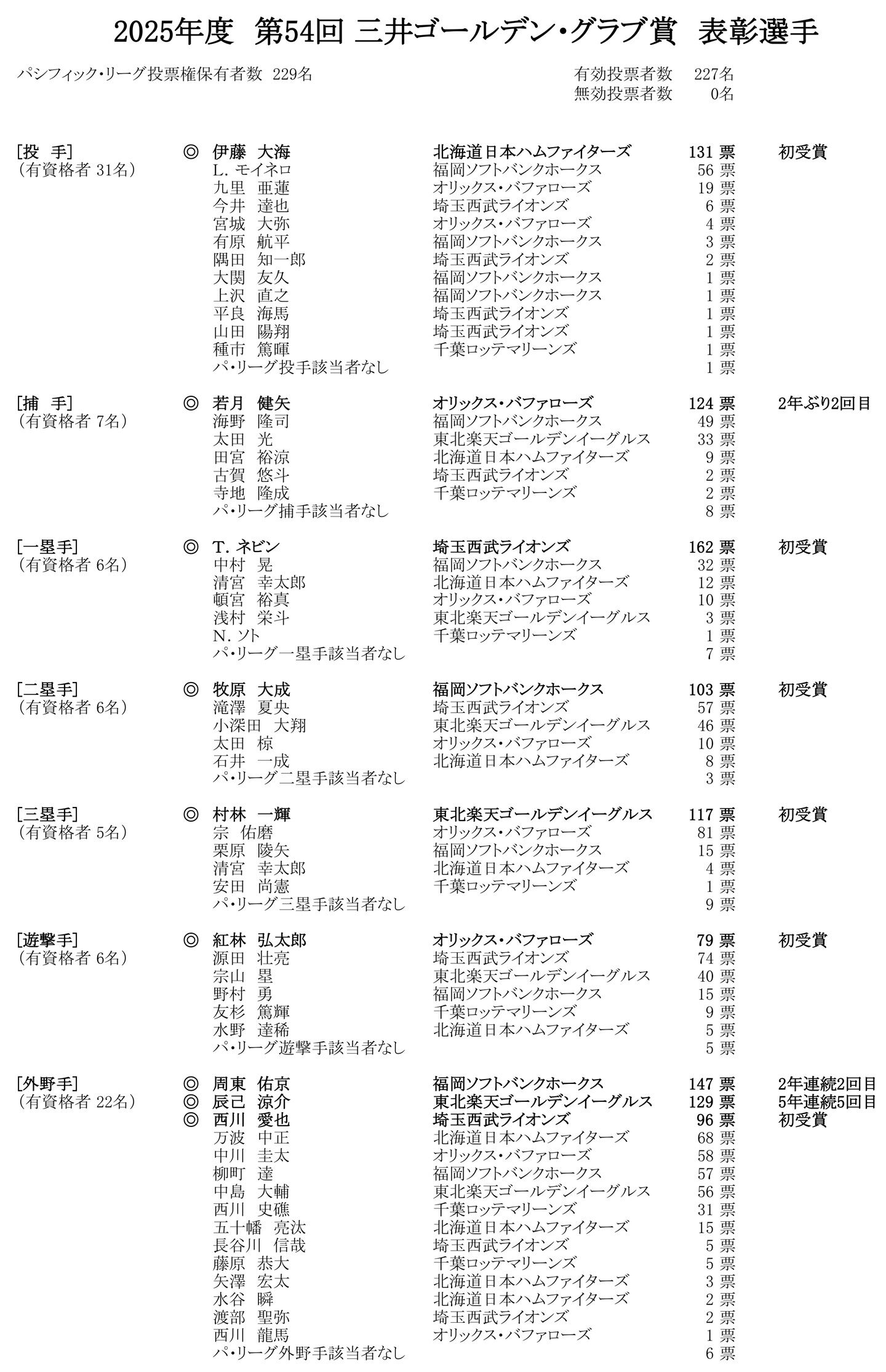 2025年度『第54回 三井ゴールデン・グラブ賞』有資格者が発表される!!!