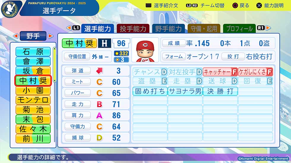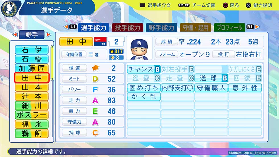 『パワプロ2025』が11月20日(木)に2025年シーズン終了時点アップデートへ!!! 中日・田中幹也ら一部選手の選手能力査定が先行公開される!!!