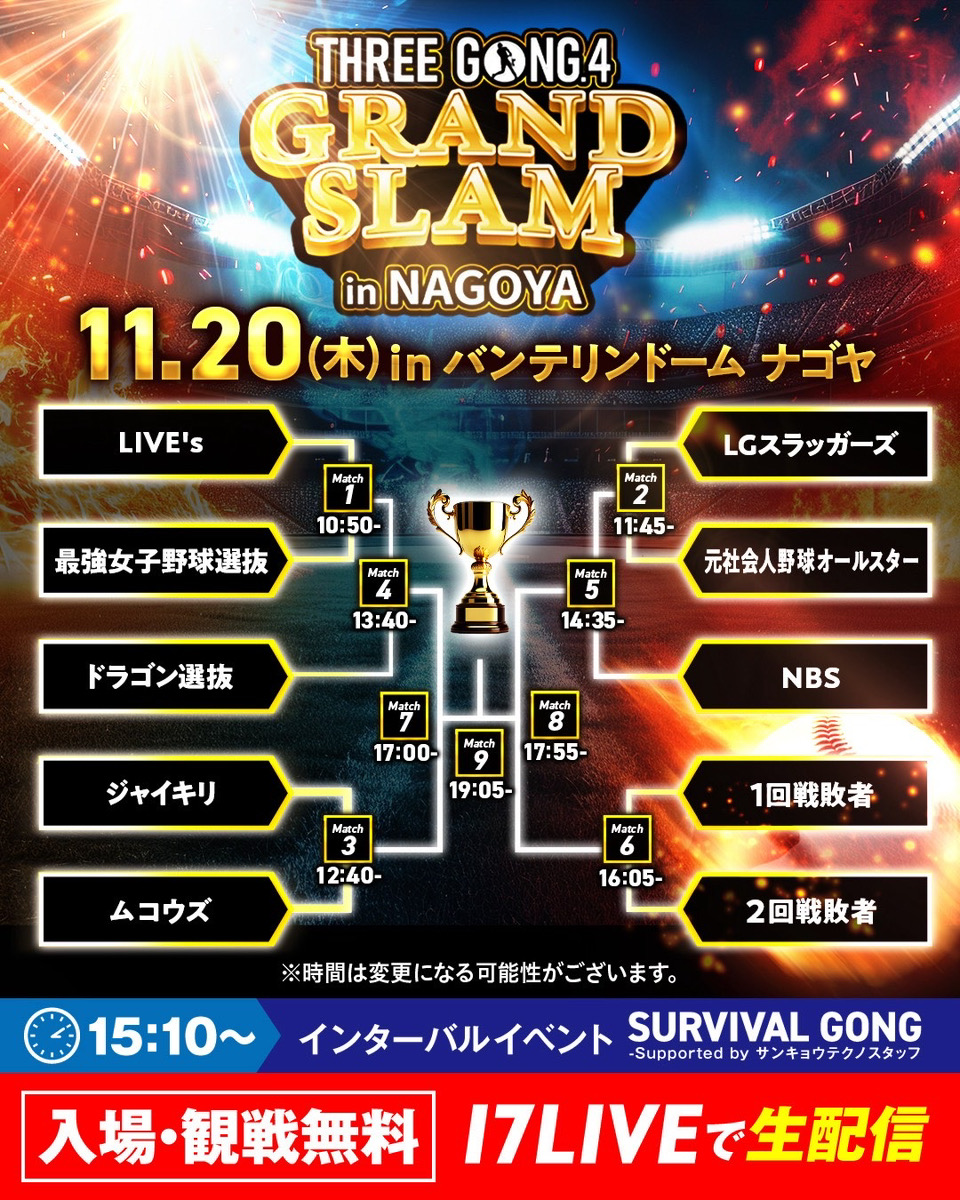 11月20日(木) バンテリンドームで『THREE GONG』が開催へ