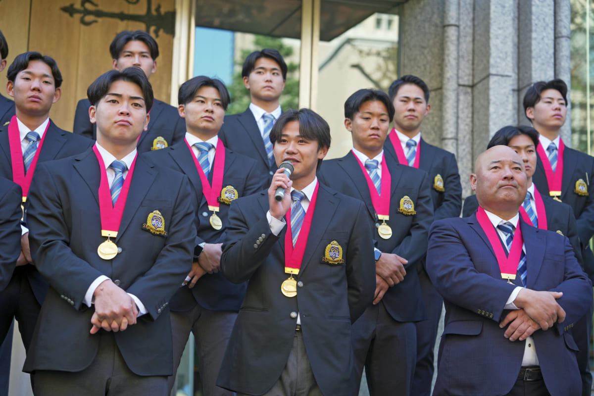 智弁和歌山高で夏の選手権優勝を経験し、大学4年間で常勝青学大の絶対的エースにまで成長した。次なる目標はプロの世界での活躍だ。「もう僕の中で切り替えは終わっている。今日の報告会をもって大学は終わりかなと思うので、明日からは次のステージに向けて練習したい」と慢心はない。