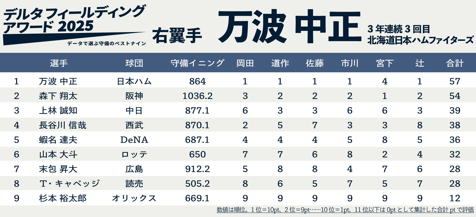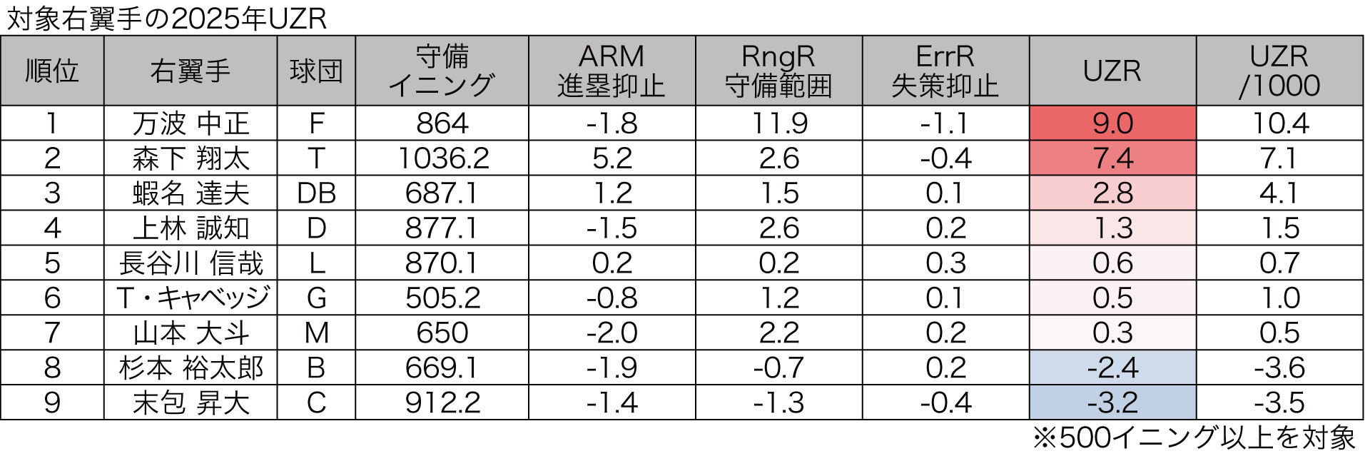 DELTAが『【右翼手部門】データで選ぶ守備のベストナイン “デルタ・フィールディング・アワード2025”』の守備指標・UZR、守備評価データを公開する