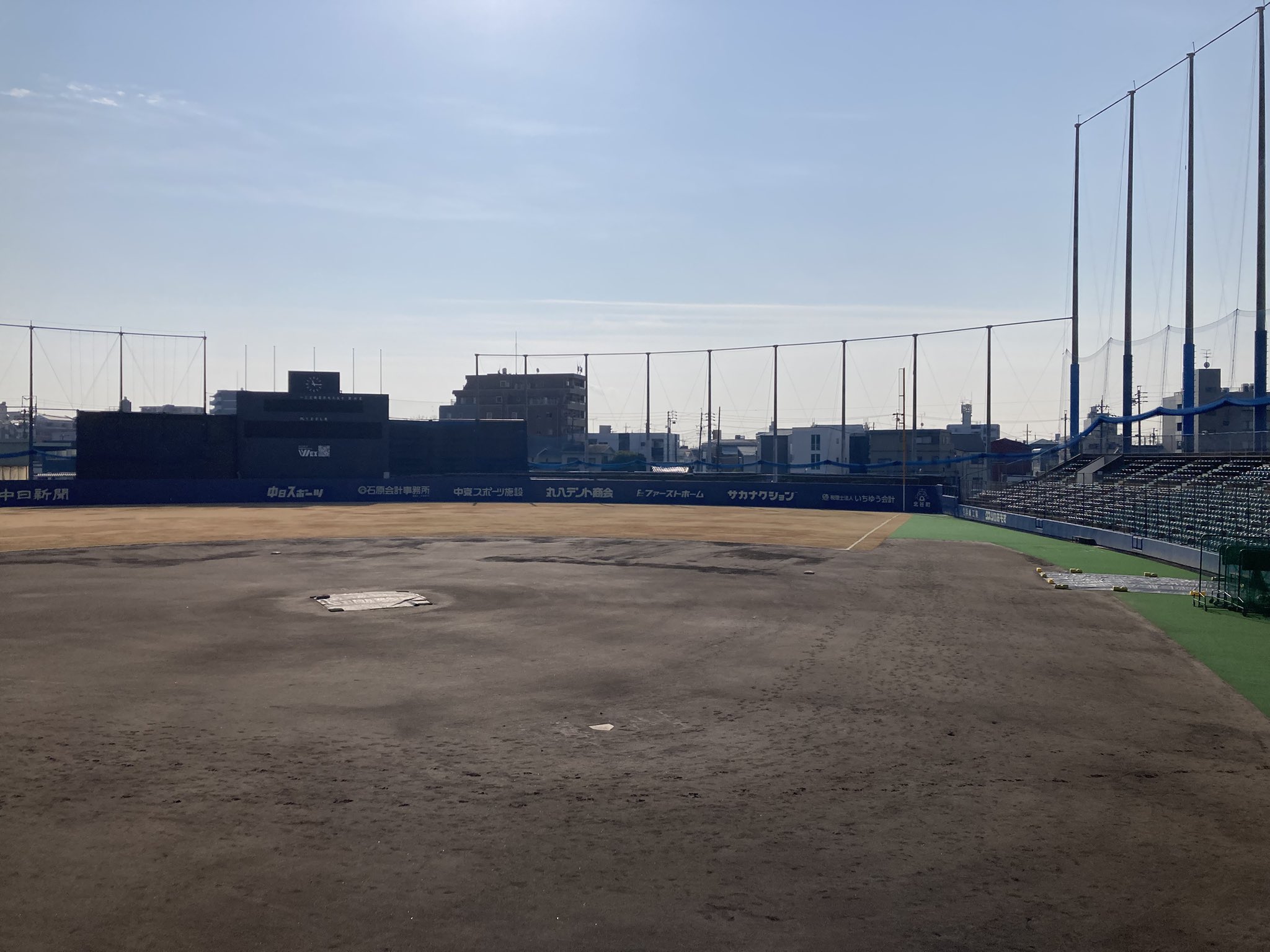 ナゴヤ球場。グラウンドにも屋内練習場にも人影がない…と思ったら、石川昂弥選手の姿がありました。