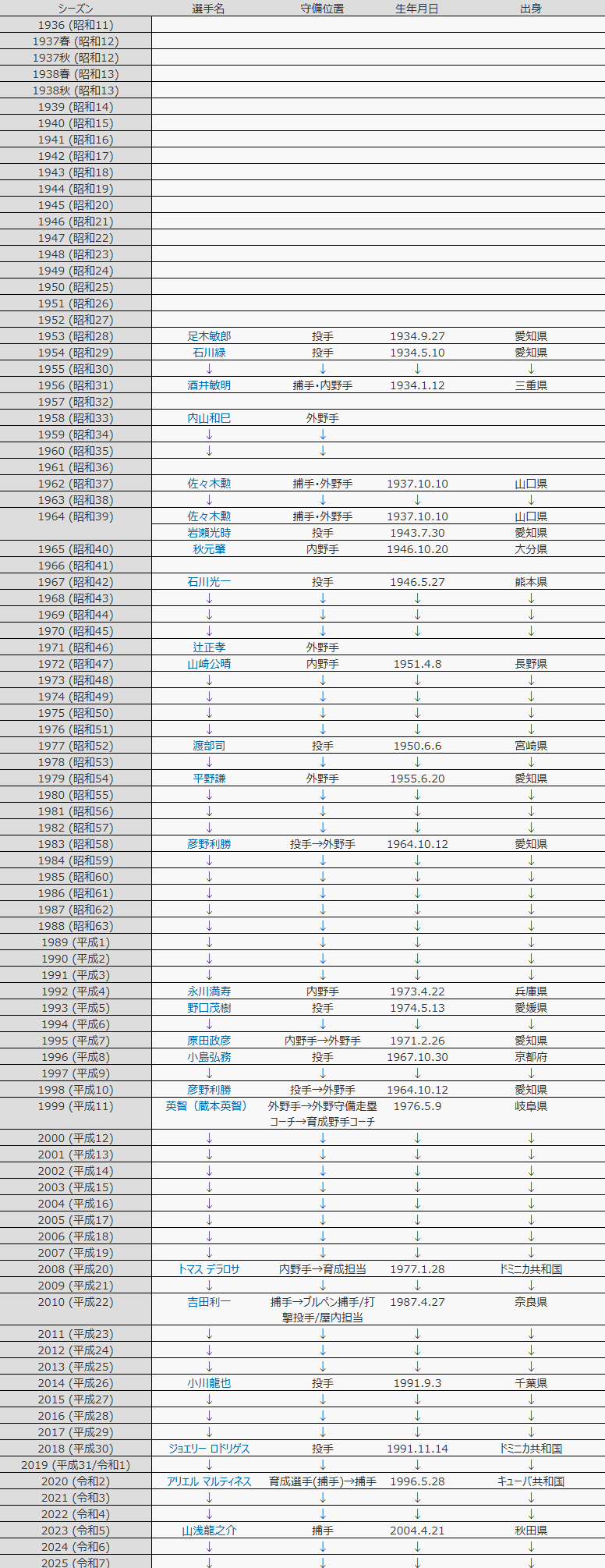 2025年12月20日 20:00 0コメント 中日ドラゴンズのもとけ 来季から花田旭が背負う 中日ドラゴンズ、歴代の背番号57選手一覧 ツイート シェア はてブ 送る Pocket ■2024.12.10 中日ドラゴンズ公式サイト歴代背番号 詳細はこちらから 中日ドラフト6位・花田旭の“打球速度” 中日ドラフト6位・花田旭のドラフト指名直後、部員たちとめちゃくちゃ盛り上がる【動画】 歴代の背番号57です。 《このブログの更新通知をTwitterで受け取る》 《コメント投稿フォームまで移動する》 にほんブログ村 中日ドラゴンズランキング