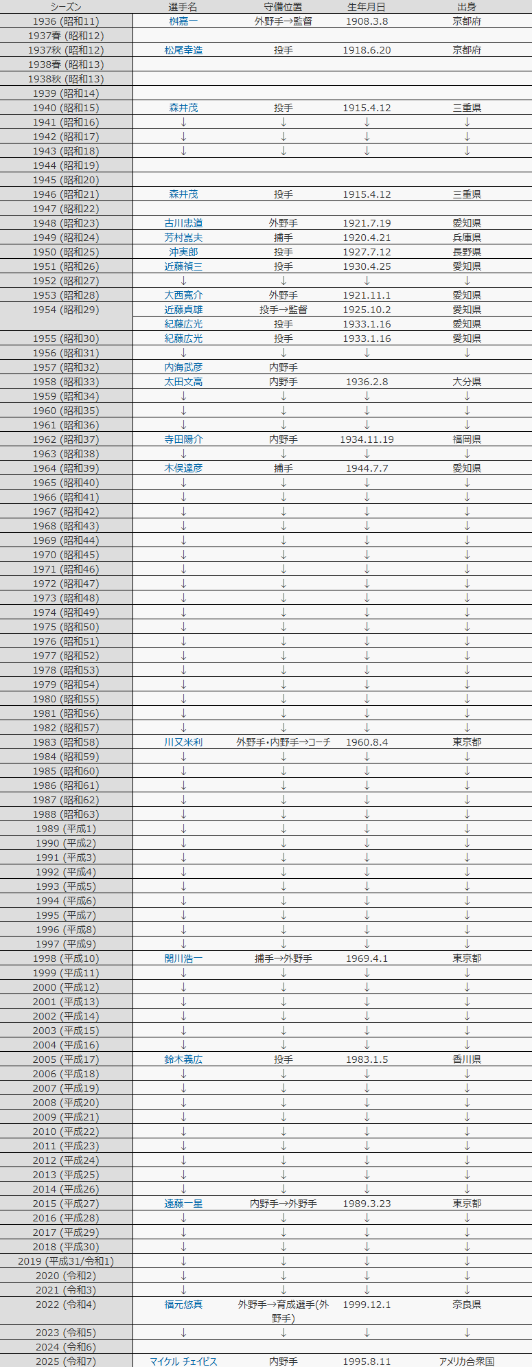2026年01月06日 20:00 4コメント 2026.01.06.20.03 中日ドラゴンズのもとけ 今季からミゲル・サノーが背負う 中日ドラゴンズ、歴代の背番号23選手一覧 ツイート シェア はてブ 送る Pocket ■2026.01.06 中日ドラゴンズ公式サイト歴代背番号 詳細はこちらから 中日・井上一樹監督、ミゲル・サノとボスラーの来季守備位置について言及する 楽天・前田健太、中日ドラゴンズと大筋合意のミゲル・サノについて投稿 歴代の背番号23です。 《このブログの更新通知をTwitterで受け取る》 《コメント投稿フォームまで移動する》 にほんブログ村 中日ドラゴンズランキング