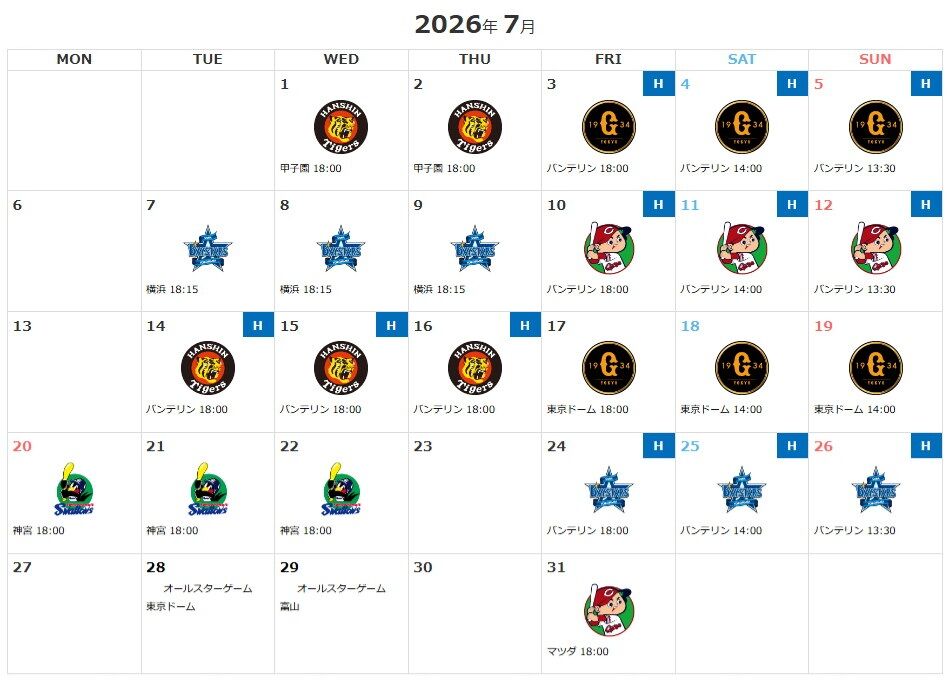 2026年セントラル・リーグ公式戦およびセ・パ交流戦 試合開始時間発表