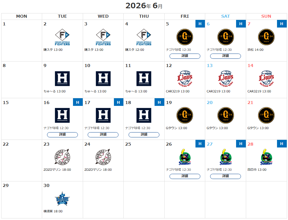 割と12球団の2軍と満遍なく当たる様に見えるな。