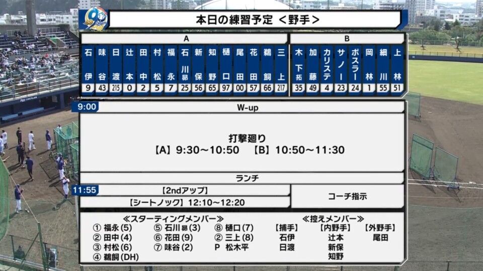 午後からのスワローズ戦、昨日はヤングメンバーでしたが今日はよりレギュラー争奪戦に参戦してほしいメンバーですかね?