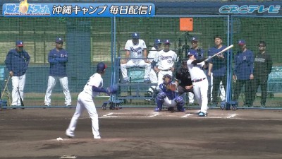 MLB通算164本塁打のサノーがドラのベテラン3投手と対戦!プロ11年目の宇佐見真吾が柵越えすれば、15年目の高橋周平のあたりはギリギリでキャッチ!【2026中日ドラゴンズキャンプ2月14日】
