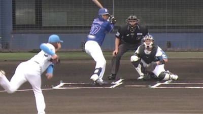 ※2回表、鵜飼の打席、一塁走者・三上が牽制死