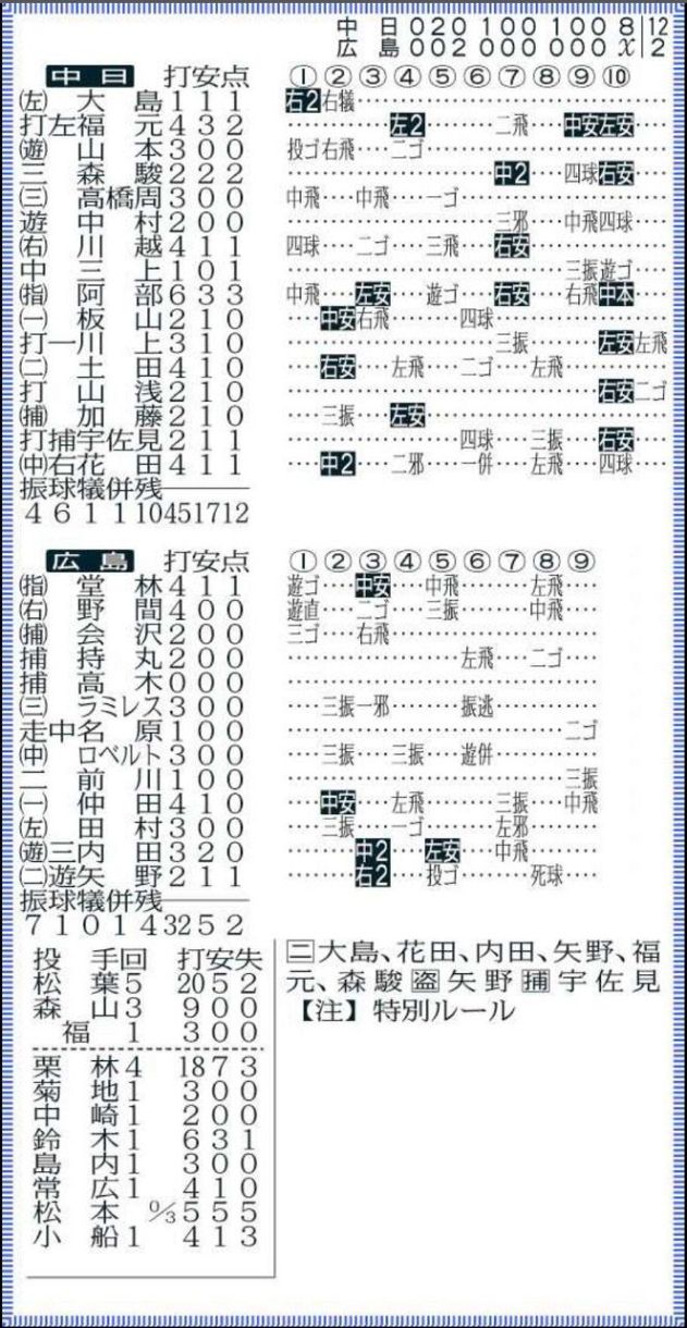 ◆中日2軍戦の詳細情報がバッチリわかる 3月4日『広島-中日』のテーブルスコア【画像】:中日スポーツ・東京中日スポーツ