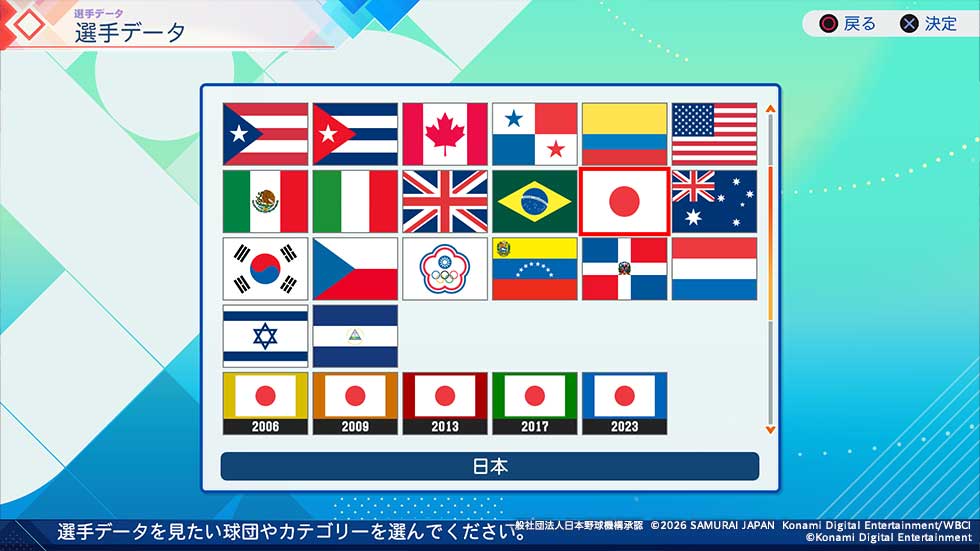 対戦ではWorld Baseball Classic™歴代日本代表チームを使用可能。