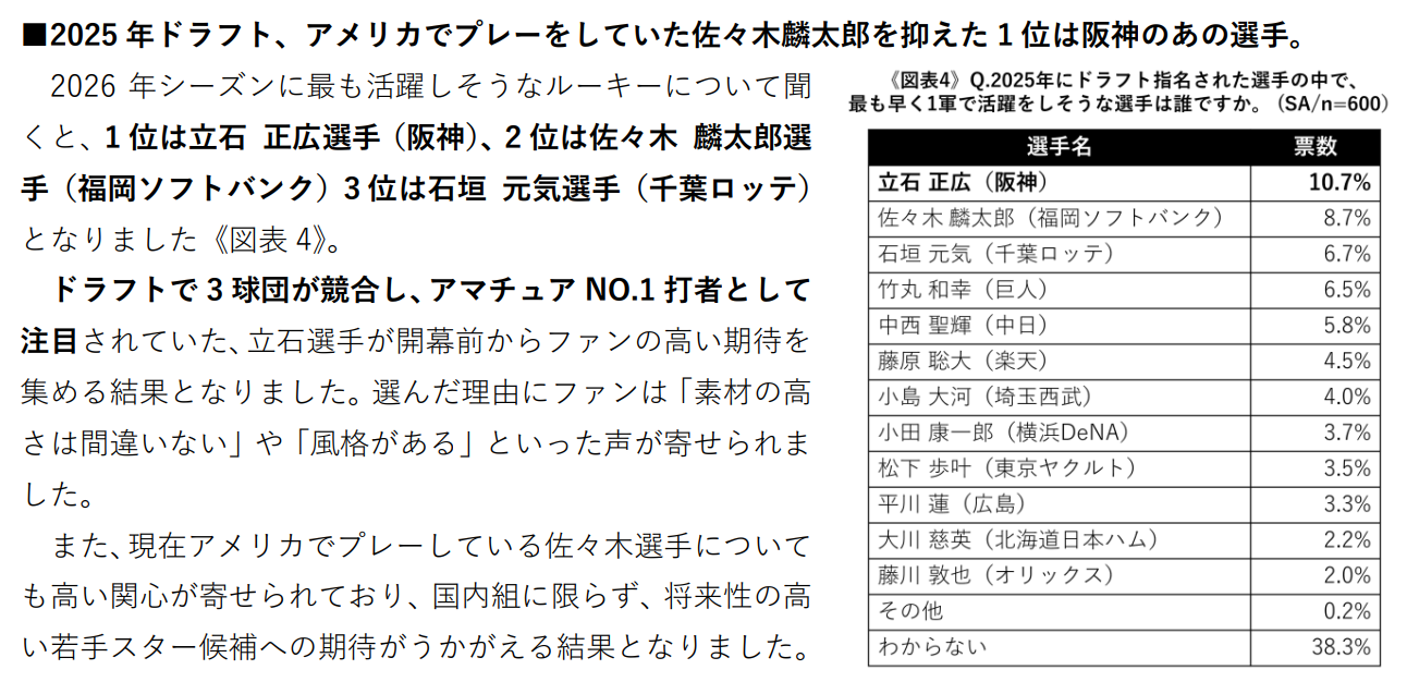 ●2026年ファンの優勝予想は、セ・リーグ阪神、パ・リーグ福岡ソフトバンク