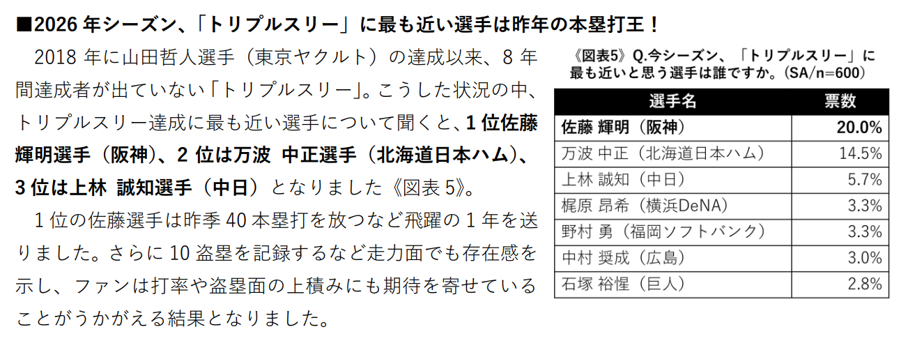 ●2026年ファンの優勝予想は、セ・リーグ阪神、パ・リーグ福岡ソフトバンク