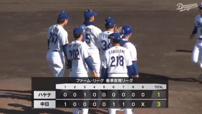 3月12日(木) ファーム春季教育リーグ「中日vs.ハヤテ」【試合結果、打席結果】 中日2軍、3-1で勝利!!! これで4連勝!!!一部の1軍メンバーが出場する
