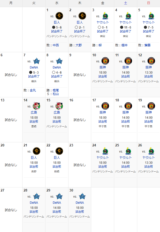 【4月試合日程】
