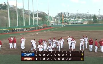 4月11日(土) ファーム公式戦「楽天vs.中日」【試合結果、打席結果】 中日2軍、7-8で敗戦… 延長タイブレーク逆転サヨナラ負け…