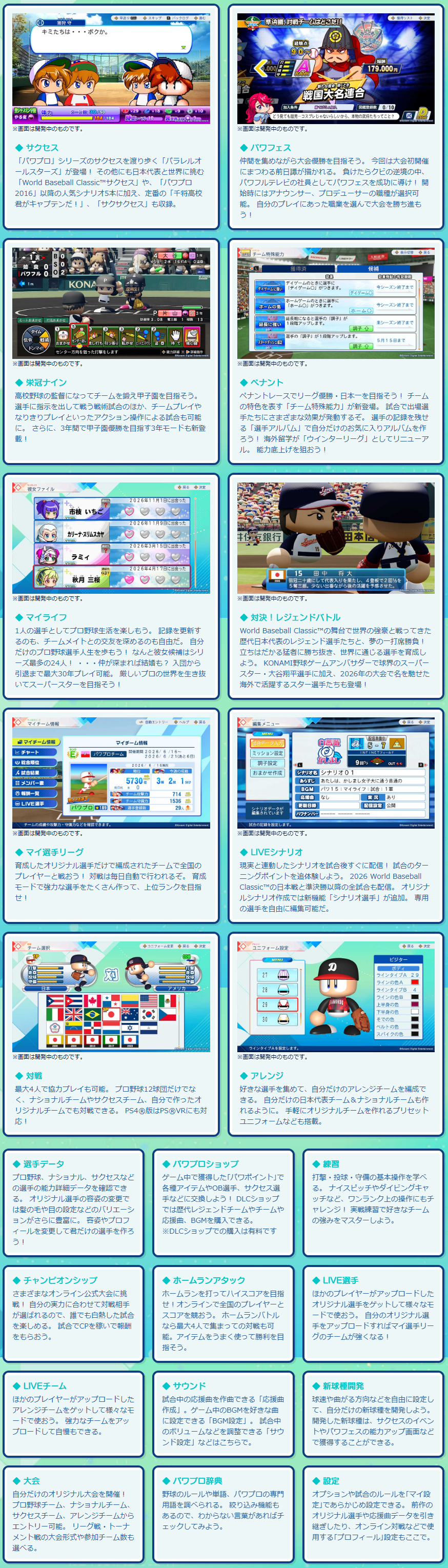 #パワプロ2026 公式サイトにてモード一覧を公開したでやんすよ!