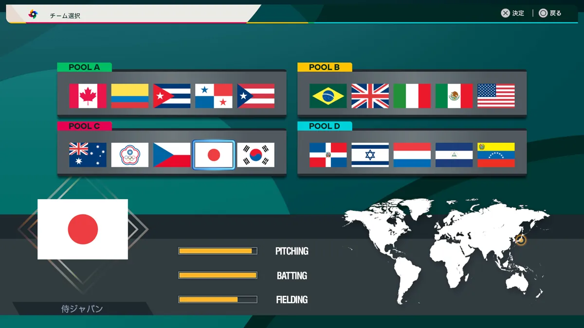 自分で編成した代表チームを入れたり、過去の侍ジャパンチームを組み入れることもできます。